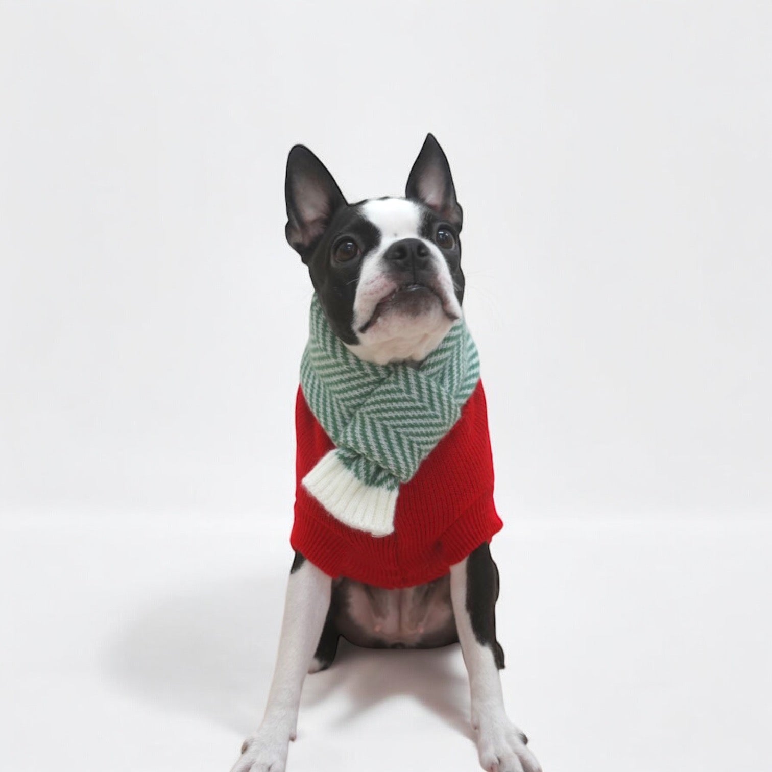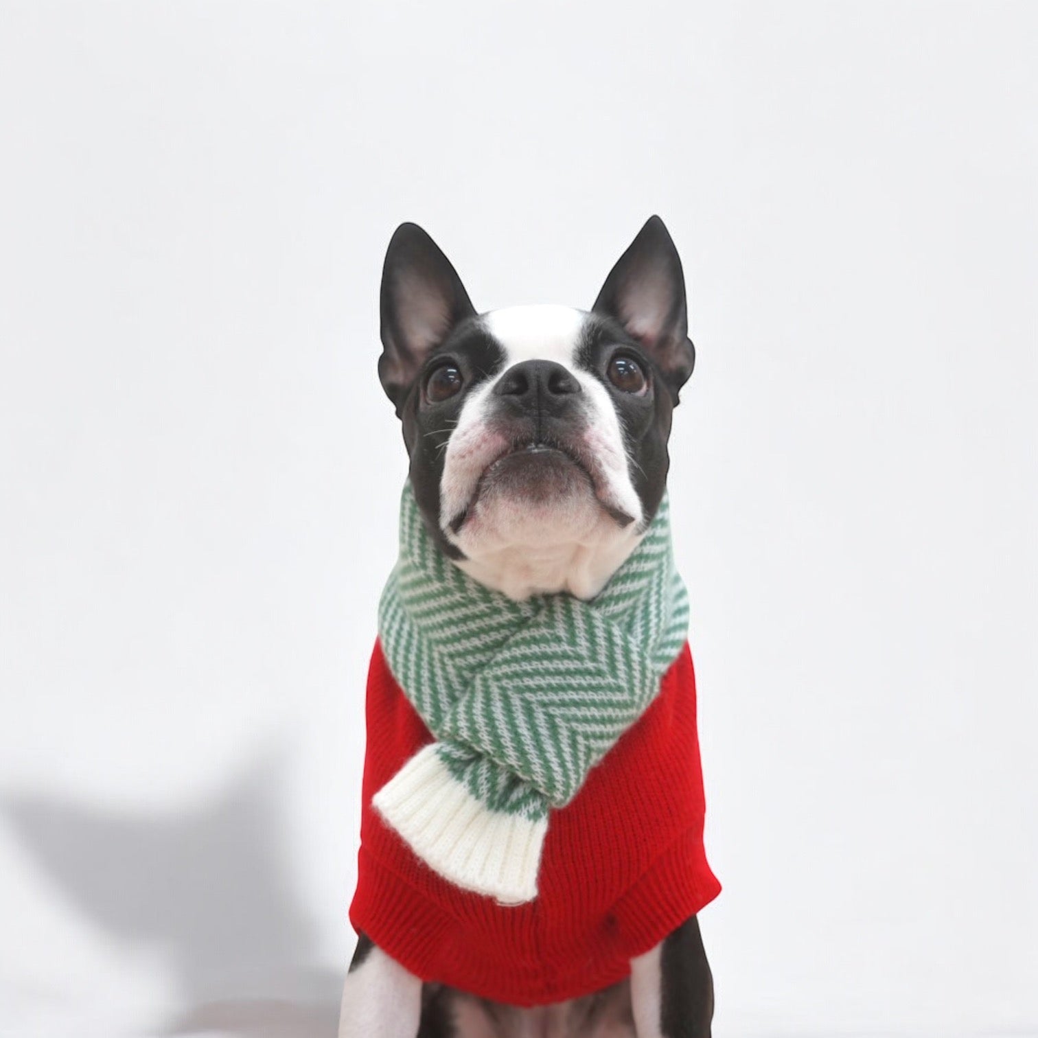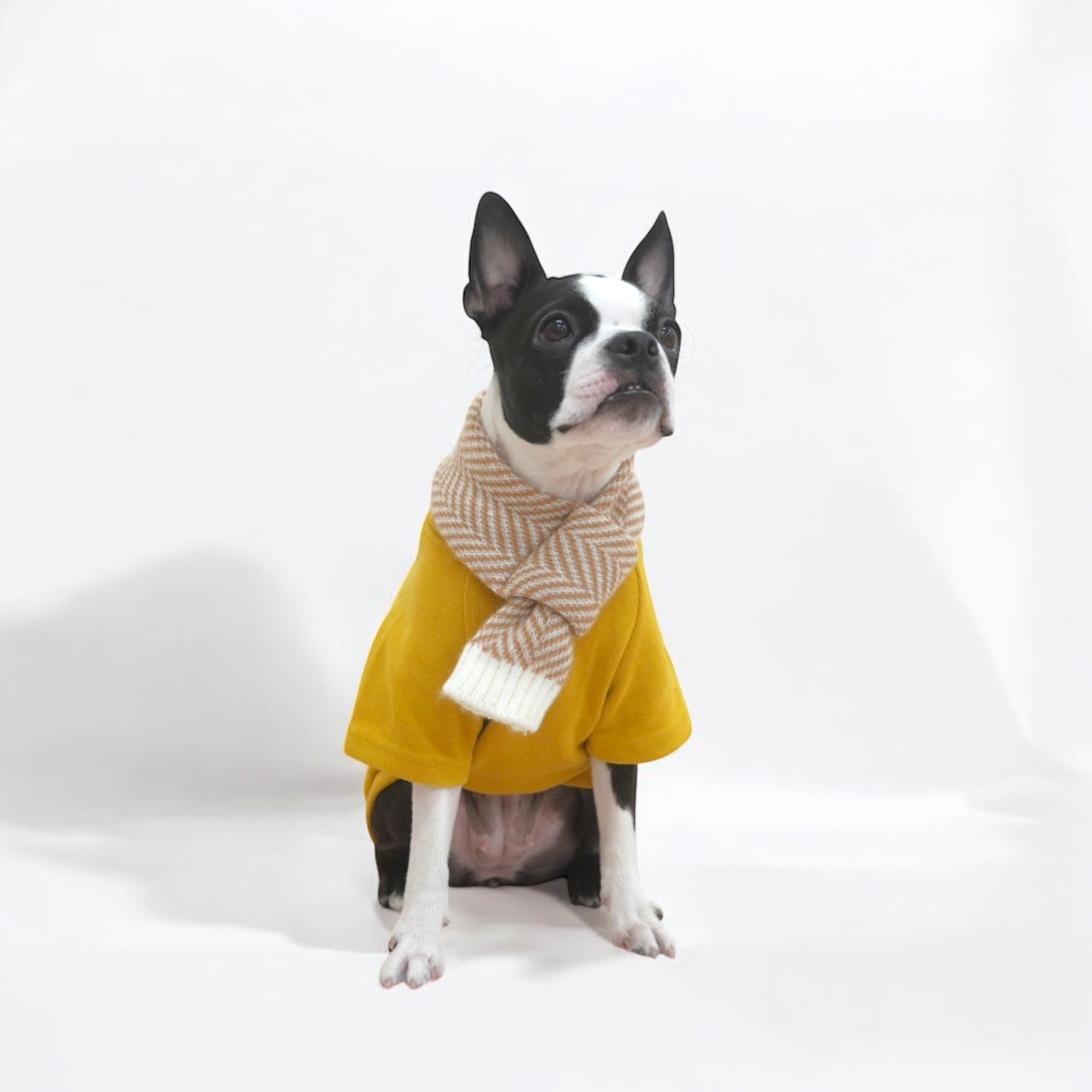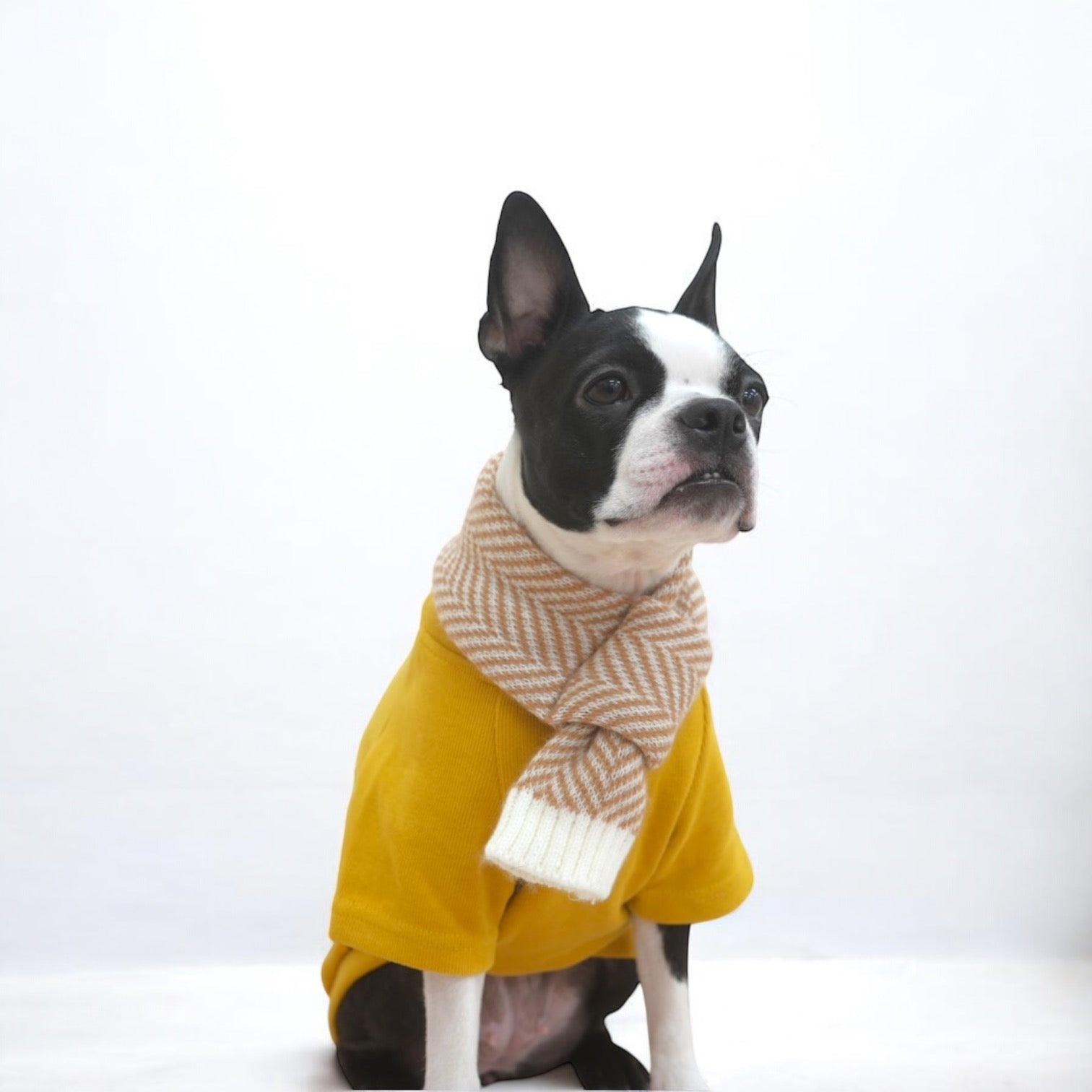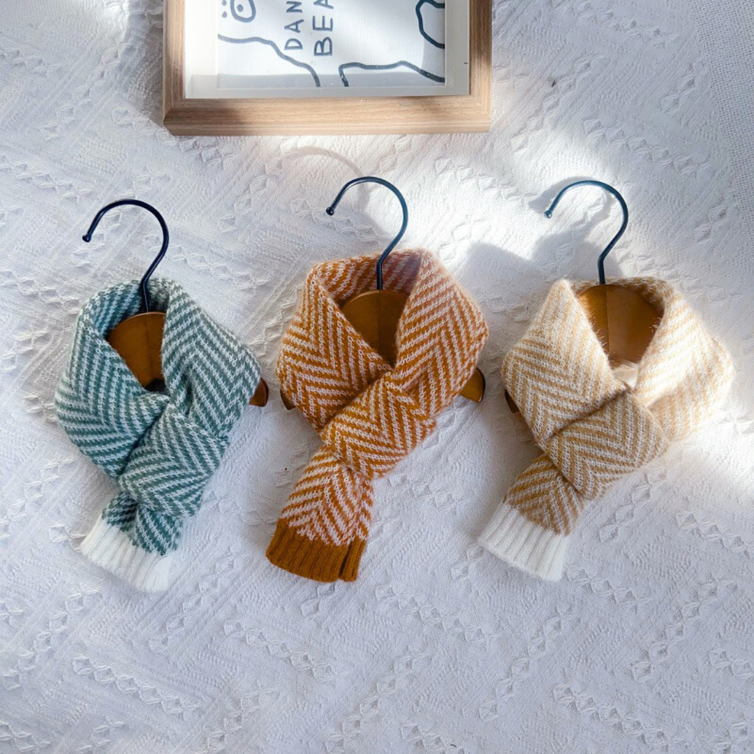 ヘリンボーンの大人ぽいデザイン冬用マフラー。カラーバリエーションが豊富なのでお出かけに合わせて色合わせを楽しんだり、多頭の子は色違いで揃えるのもおすすめです。柔らかな肌触りで冬にぴったりのアイテムです。