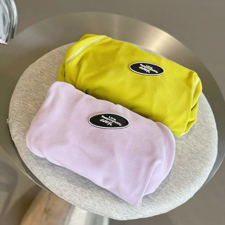 柔らかな肌触りのいいロンパース。首元やお尻周りに紐が付いており体型に合わせて微調整可能になっております。