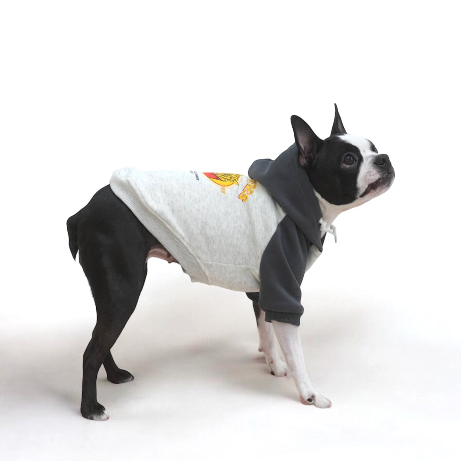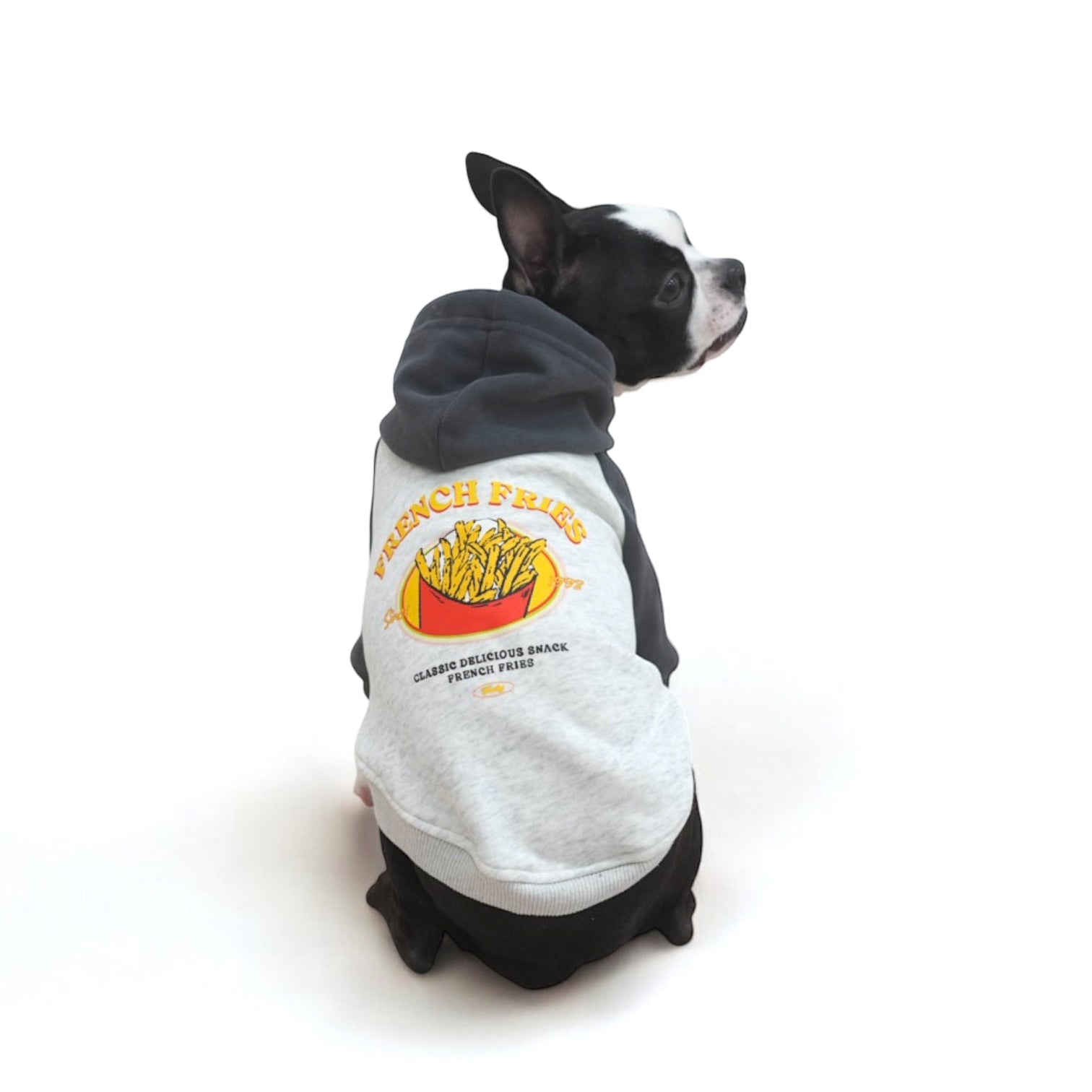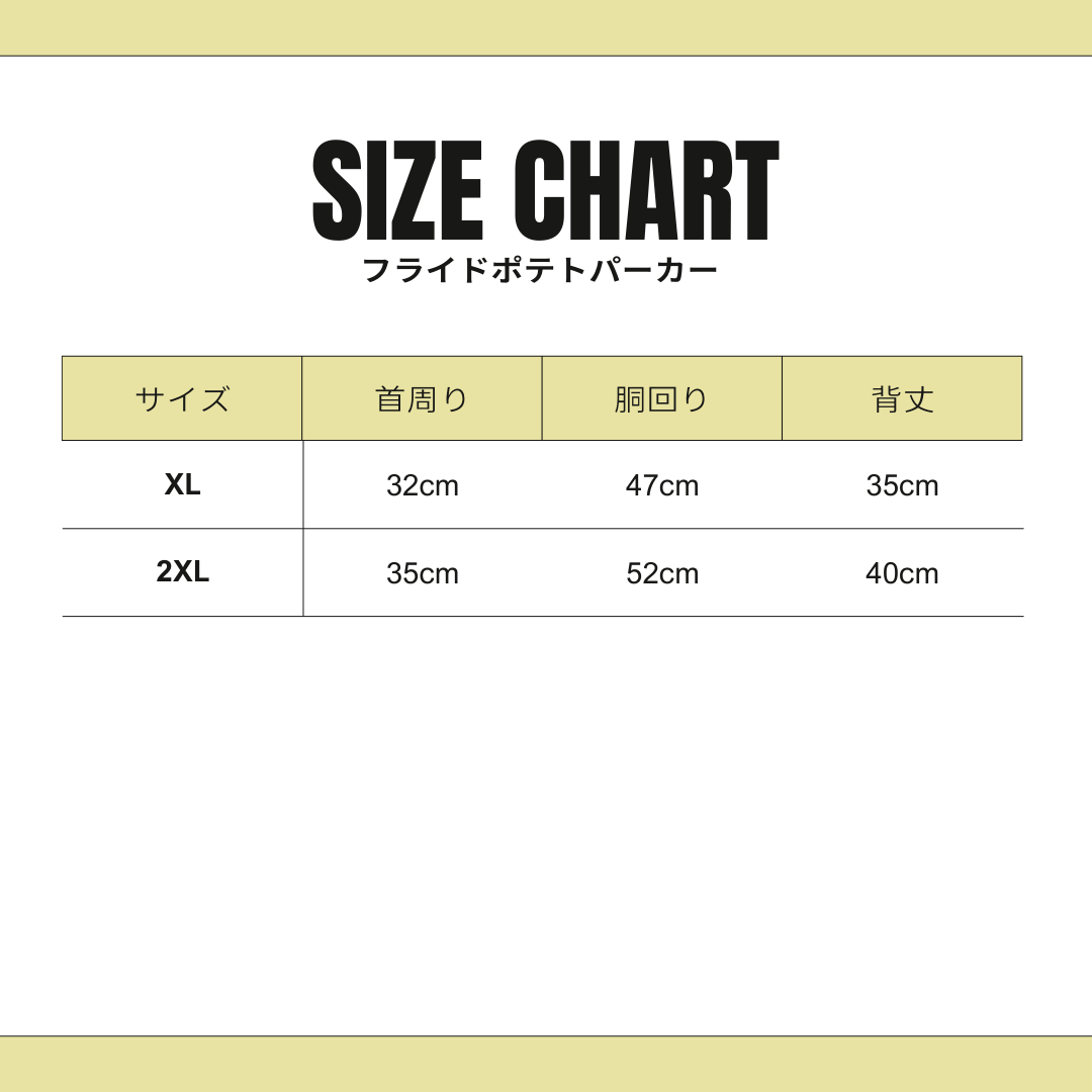 背部にフライドポテトのプリントが入ったポップなパーカーになります。裏起毛があるので保温性も抜群です。