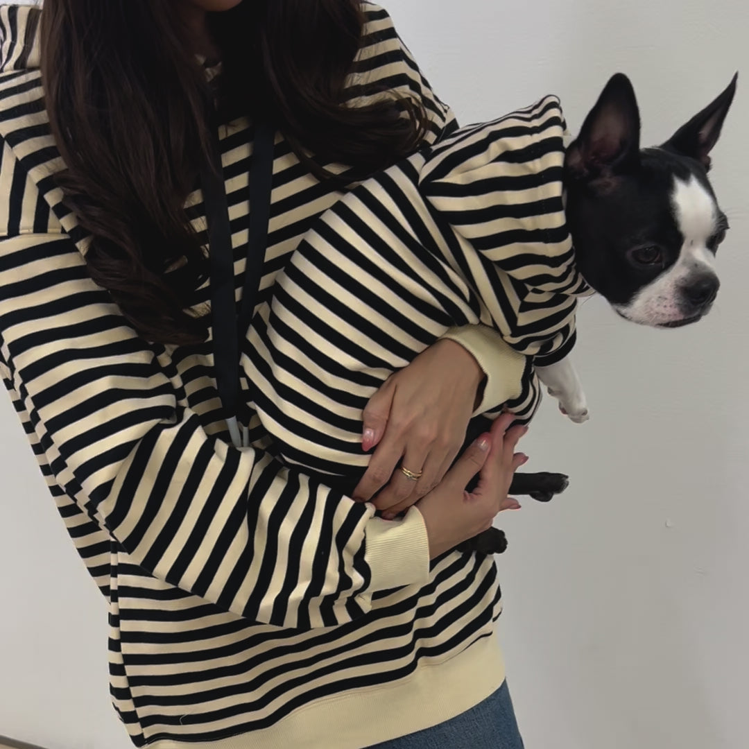ボステリ大人気のストライプ柄のパーカーになります。裏起毛なので肌触りもよく温かい仕様になっております。