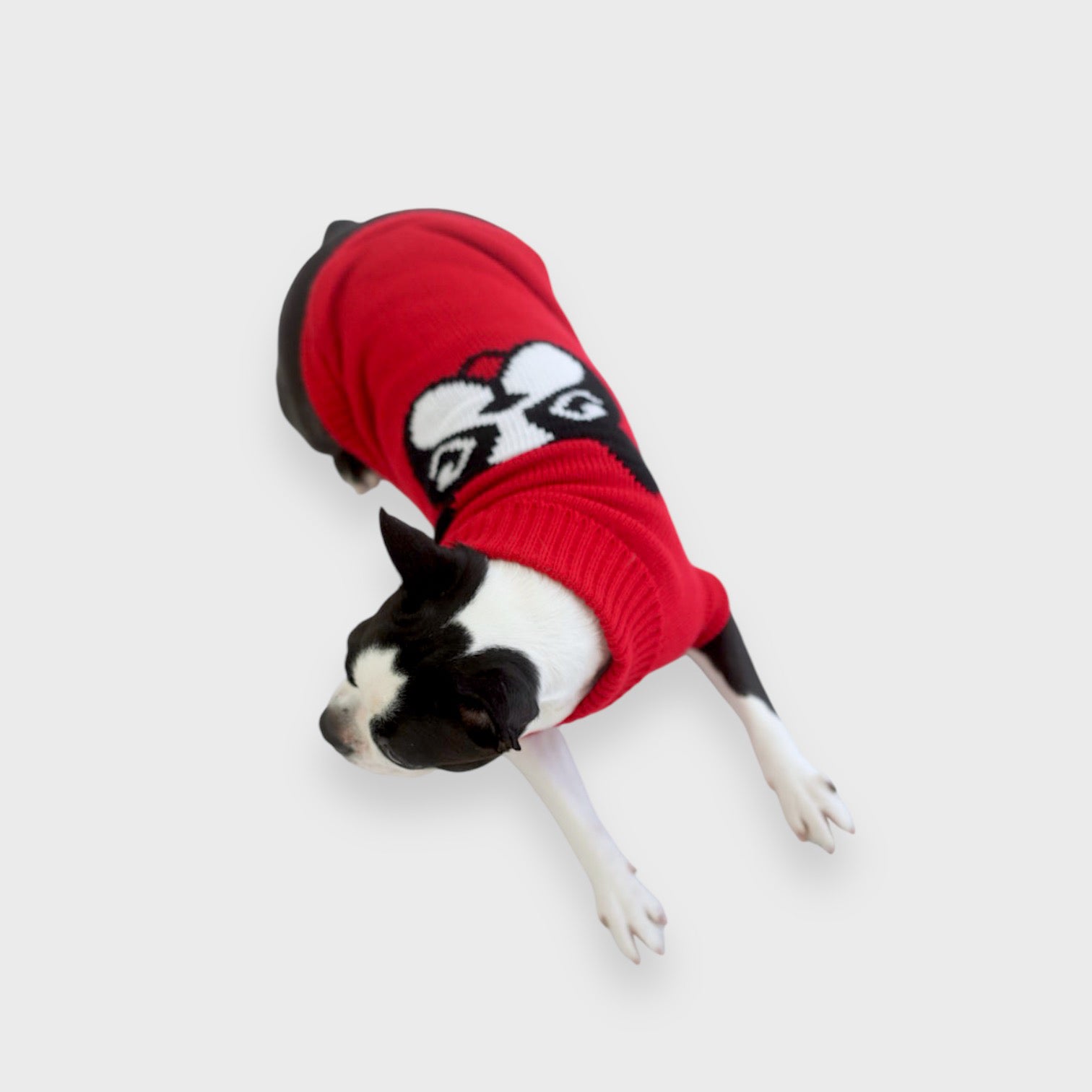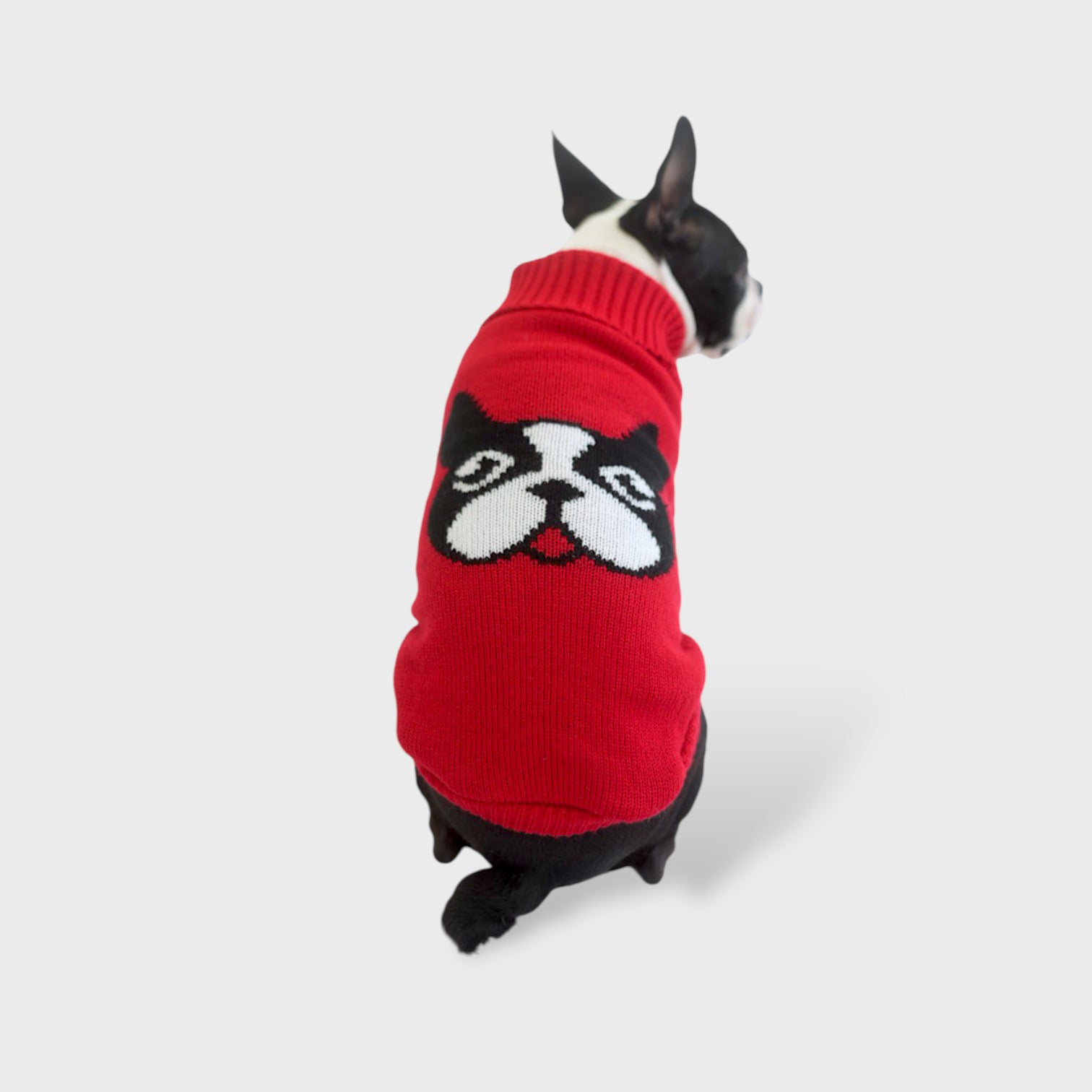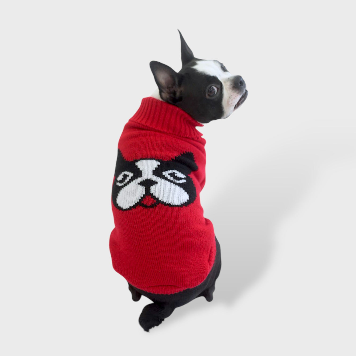 ボステリ模様が背中に出現?!赤とグレーの2カラーからお選びいただけます。首元までしっかり覆れるハイネックデザインなので冬も暖かくご着用いただけます。