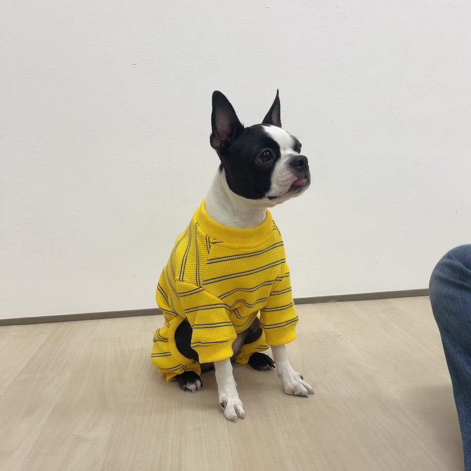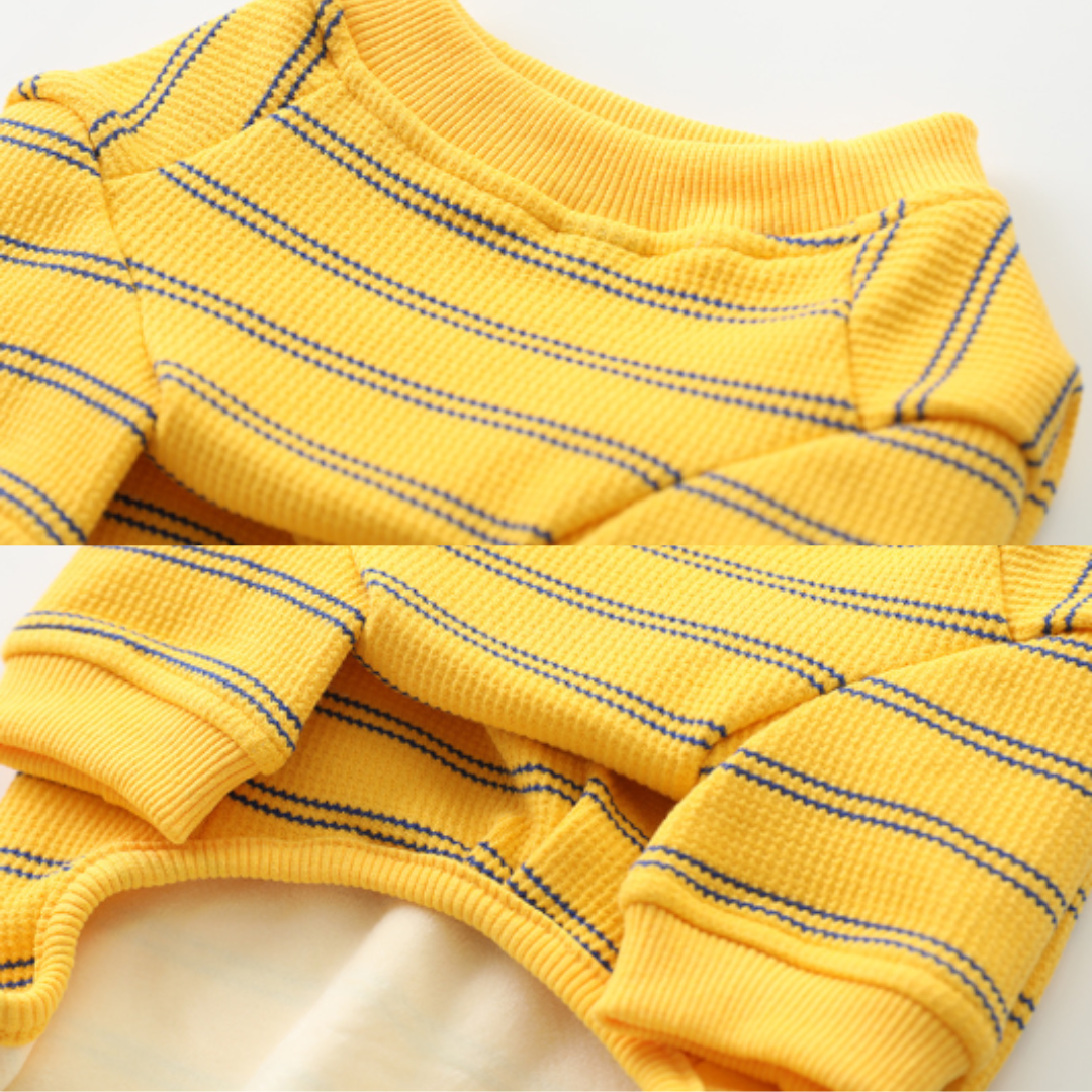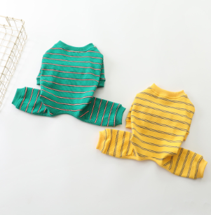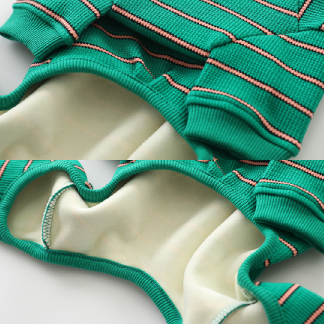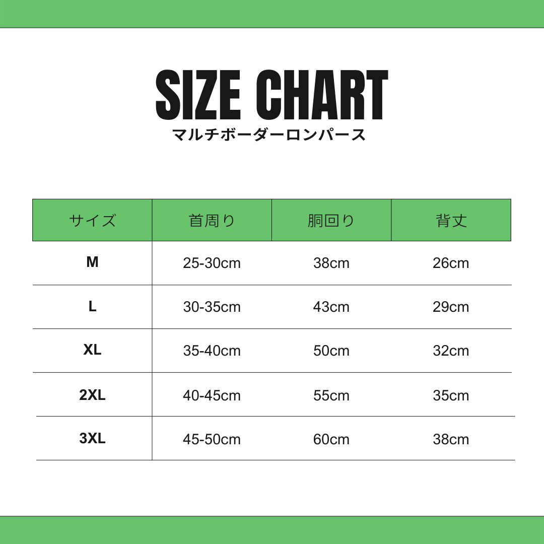 裏起毛で保温性のあるマルチボーダー柄のロンパース。イエローとグリーンの2色展開になります。