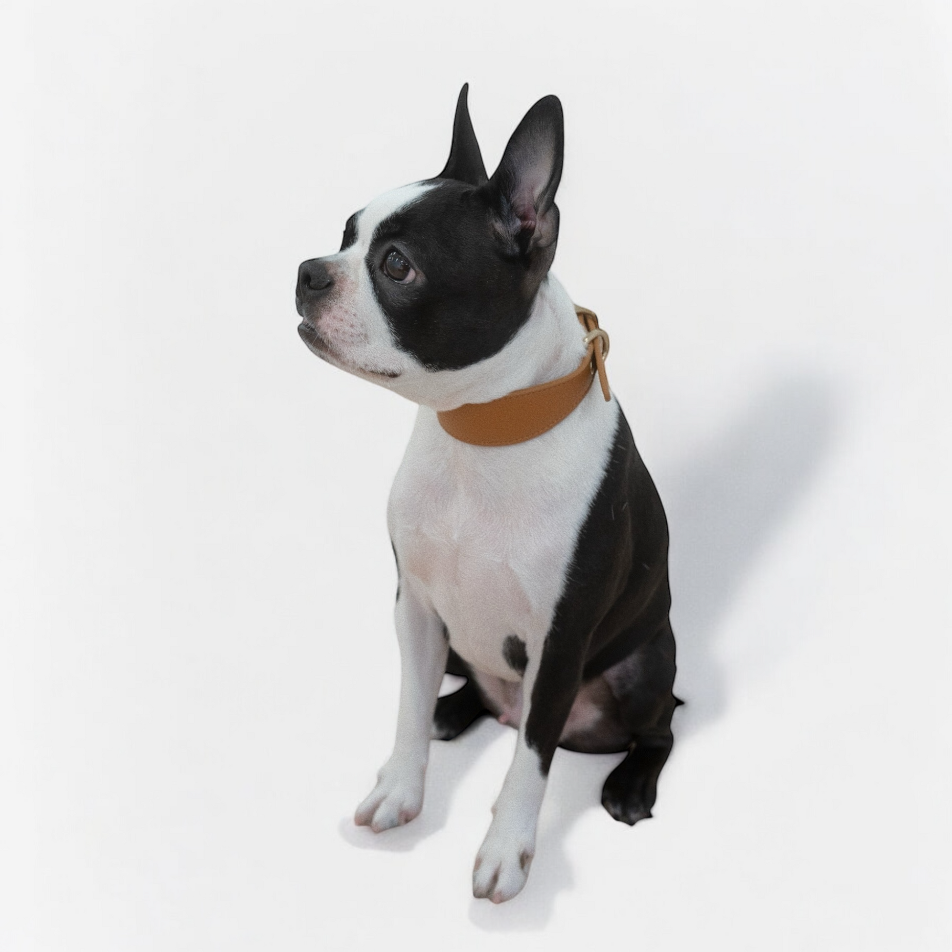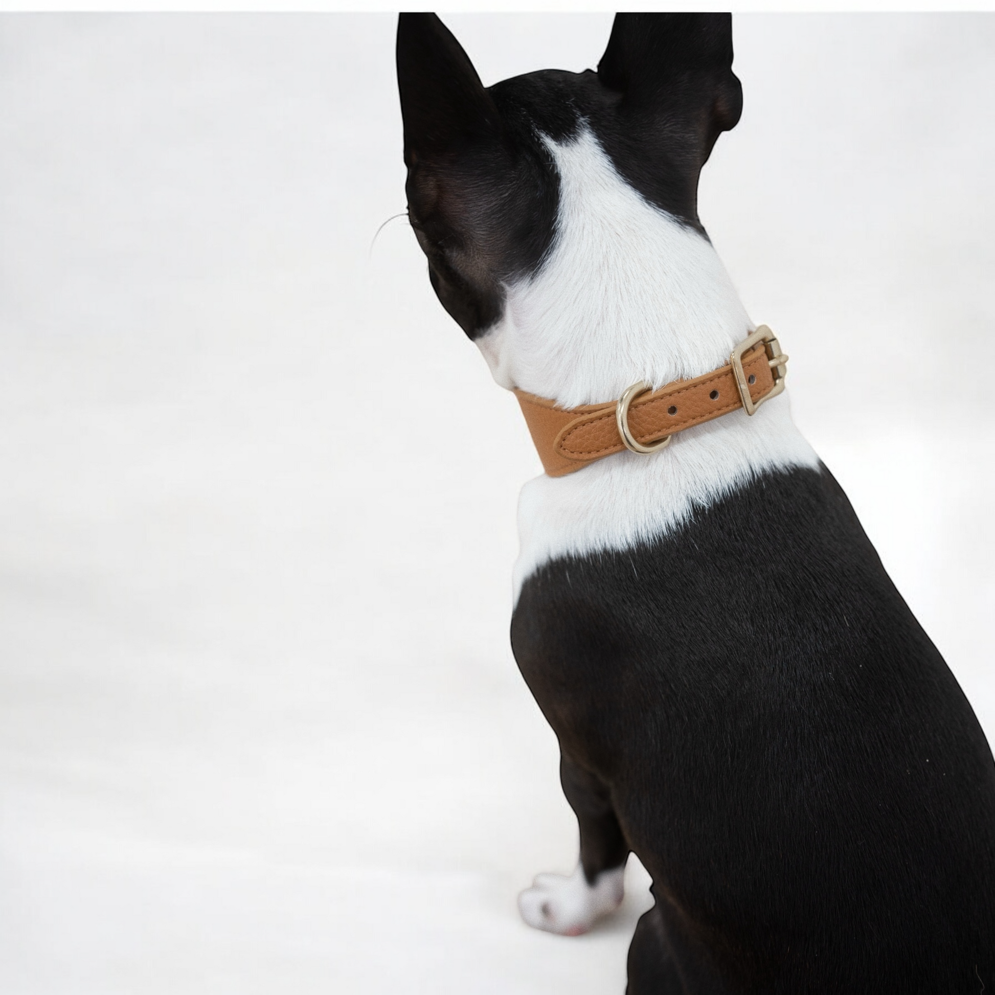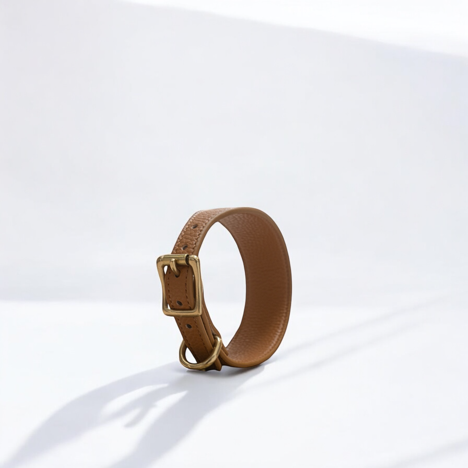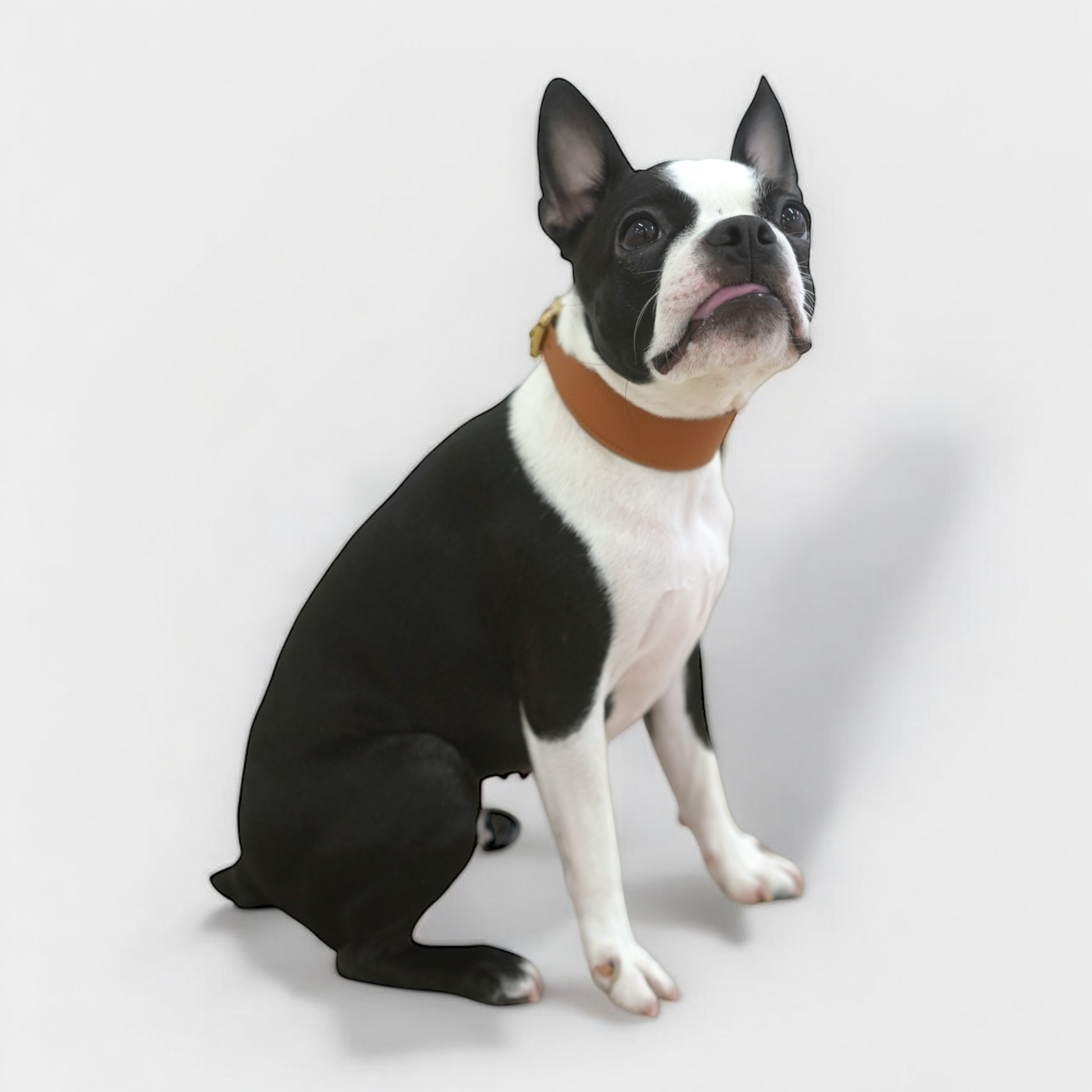 エレガントさをプラスした首輪です。首輪幅を縦方向を幅広くすることで頸部への負担を和らげているデザインになっています。